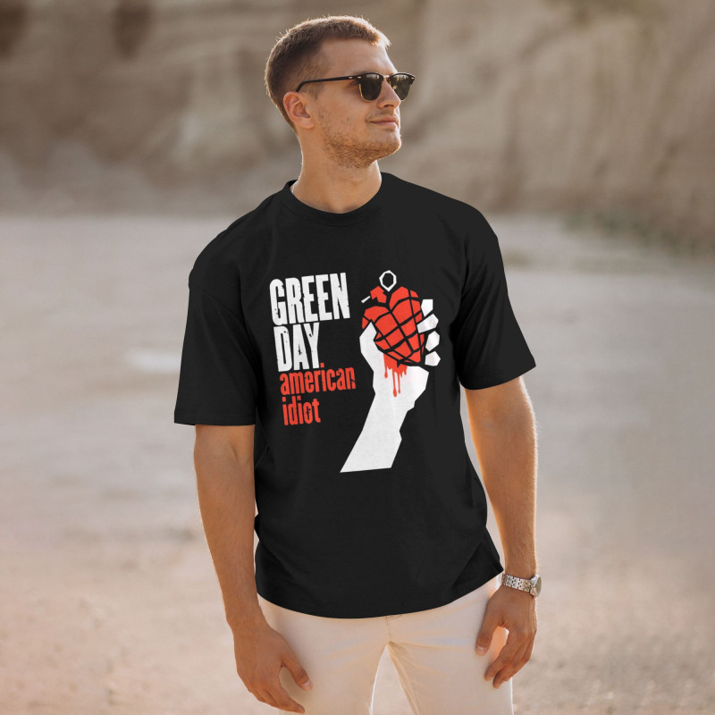 Men's Green Day American Style T shirt Black